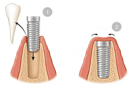 A dental implant is an artificial tooth root made of titanium that is inserted into the upper or lower jawbone