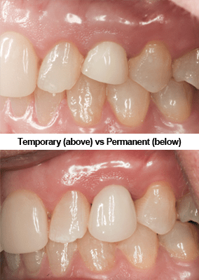Nowadays immediate loading is becoming far more common, where the implants and temporary teeth are placed within 48 hours of implant surgery and are left in position for the healing period. At the end of the healing period, the temporary teeth are replaced with permanent crowns.